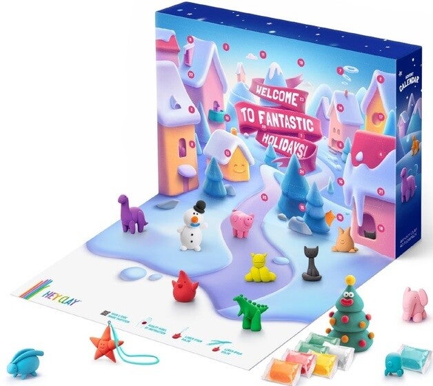 De HEY CLAY Advent Calendar is een kleiset waarbij je kunt aftellen tot kerst! De HEY CLAY adventskalender bevat cans (bakjes) met klei waarmee je 36 figuren kunt maken. Download de HEY CLAY app en volg stap voor stap de uitleg om zo de figuurtjes te boetseren. Dit wordt uitgelegd aan de hand van animaties, hierdoor is het extra duidelijk. Volg de instructies en boetseer erop los. De klei is niet giftig, extra zacht en blijft niet plakken aan handjes en de ondergrond. Ongeveer 20 minuten na het boetseren begint de klei te stollen en na 24 uur is de klei uitgehard. Het figuurtje is dan stevig en je kan ermee doen wat je wil: op een plankje zetten, aan je vriendjes laten zien of ermee spelen.