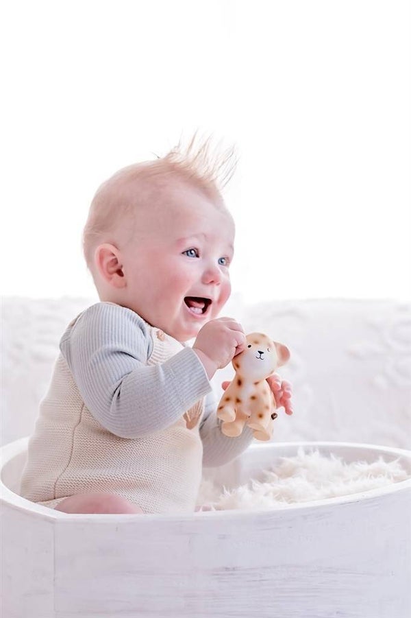 Je kleintje kan erop bijten, ermee rammelen dankzij het belletje in zijn buik en hij kan bovendien ook gezellig mee in bad! Er zit geen gaatje in de speeltjes van Tikiri, waardoor hij niet kan schimmelen. Keer op keer te gebruiken, gewoon even goed afspoelen.