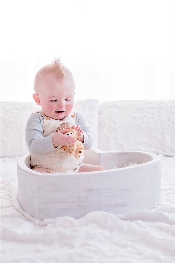 Dit is gemaakt van natuurlijk rubber. BPA- en PVC-vrij én plantaardig gekleurd, helemaal veilig voor de allerkleinsten!
