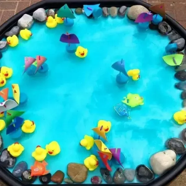 Een Tuff Tray, ook wel bekend als een Tuff Spot, is een grote achthoekige of ronde plaat van kunststof met opstaande randen. Deze randen zijn ideaal voor elk soort sensorisch spel. Gebruik het met (kinetisch) zand, water, waterparels, of zelfs pasta of rijst en voeg loose parts aka losse elementen toe zoals houten dieren en figuren. Laat kinderen ontdekken met handen en ogen.