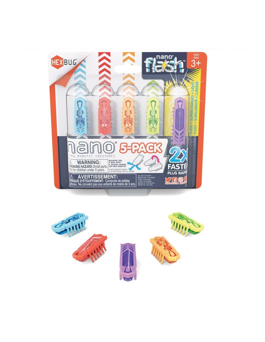 Inhoud set: 4 klassieke Hexbug Nano, 1 Hexbug Nano Flash (incl. Batterijen AG13 / LR44) Kleuren zijn verschillend per set.