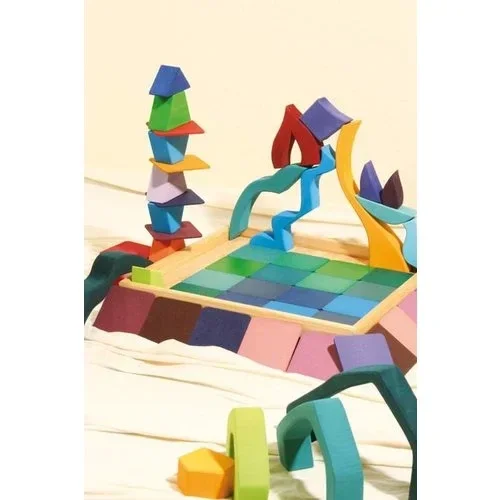 Deze prachtige 4 elementen bouwset groot formaat biedt eindeloos mogelijkheden om te bouwen, te puzzelen of de elementen te gebruiken in combinatie met andere sets en spellen van Grimms.