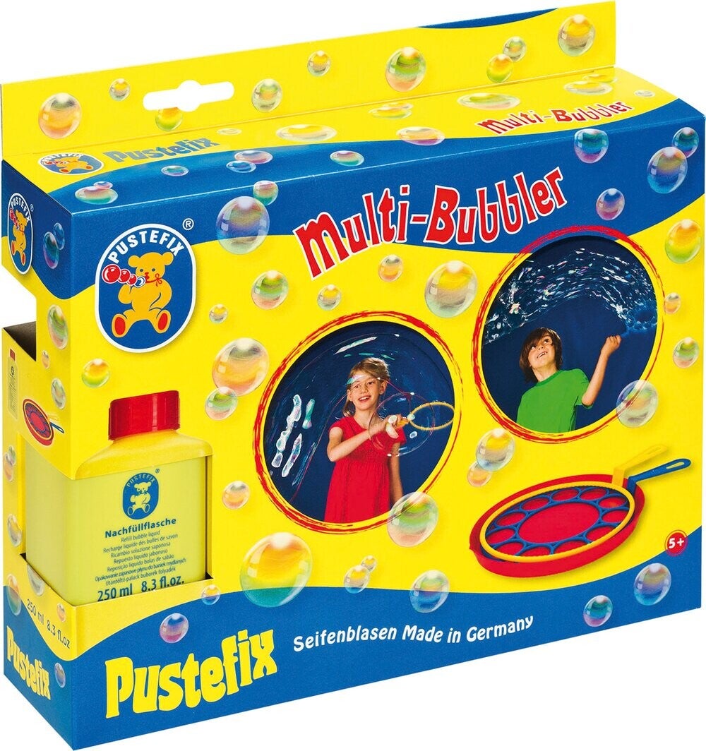 Maak meerdere zeepbellen tegelijk. Je hoeft alleen de schaal met bellenzeep te vullen, jouw ring in de zeep te leggen en een beetje de techniek te beheersen. Dan genieten maar...