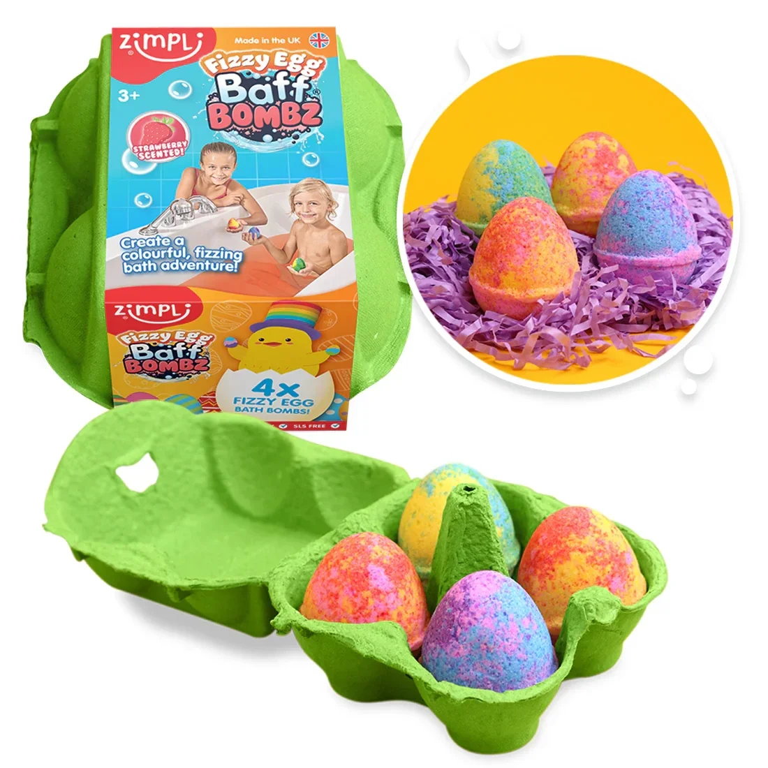 Verwen ze met 4 kleurrijke Fizzy Egg Baff Bombz voor een paasfeest vol verbeelding!