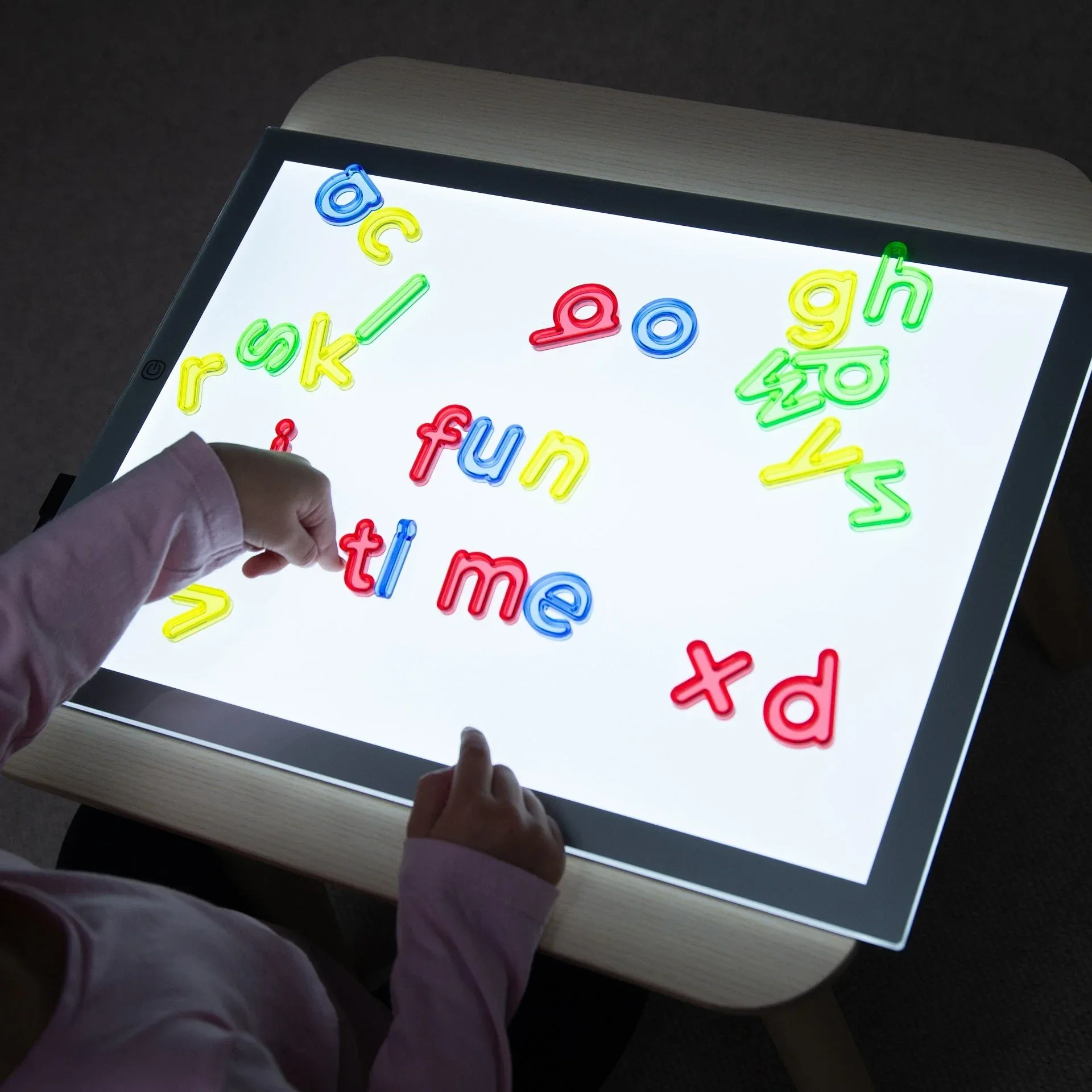 Deze dikke acrylletters zijn ideaal om over te trekken, in deeg en zand te drukken of tot leven te brengen op een lichtpaneel. Ze voegen een tastbare dimensie toe aan letterherkenning en verkenning van vroege geletterdheid. Duik in de wereld van letters met deze veelzijdige en boeiende tools!