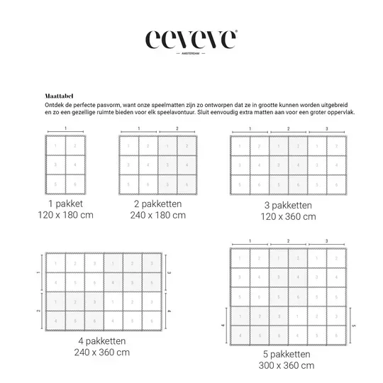De hoogwaardige Eeveve speelmat is ideaal voor alle fases van je kind. Denk aan het oefenen van tummy time, leren rollen, zitten en kruipen, tot aan veilige ondergrond voor onder speelringen of een glijbaan. Door de prachtige designs van de speelmatten zijn ze een echte toevoeging aan je interieur! De Speelmat is ook gemakkelijk op te bergen omdat deze uit puzzelstukken bestaat.