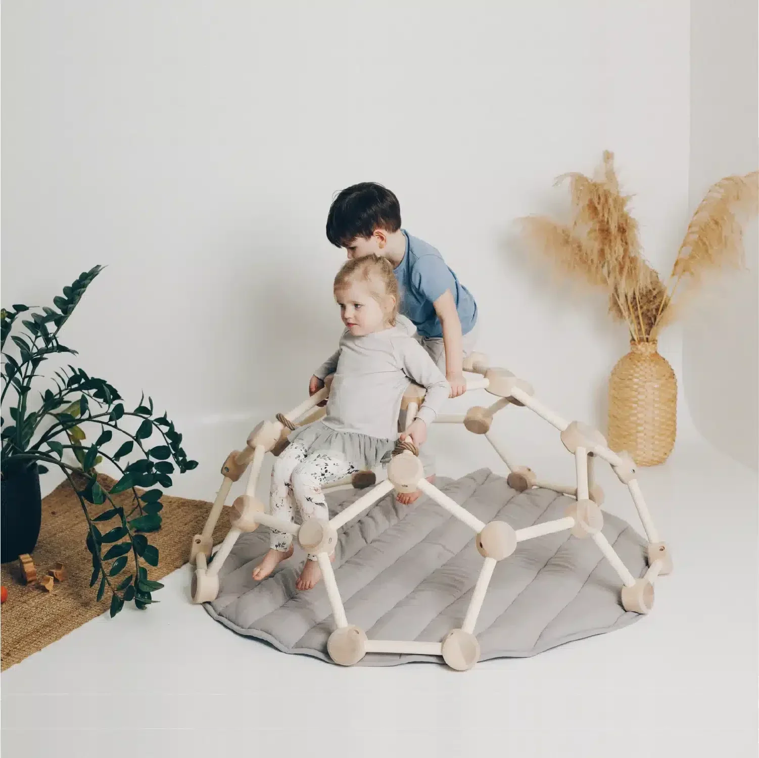 Wow! Deze klimkoepel is een innovatief activiteitenspeelgoed waarbij de avonturen van kinderen en de verbeelding perfect samenkomen! Of kinderen nu naar de top van een magische berg klimmen of om gewoon lekker te klimmen en klauteren dit klimrek opent creativiteit en zorgt voor veel speelplezier. Het helpt het kind hun evenwichtscontrole, kracht, grove motoriek en coördinatie te ontwikkelen. De stevige houten staven van de klimkoepel | dome zorgen voor een goede houvast en stabiliteit.