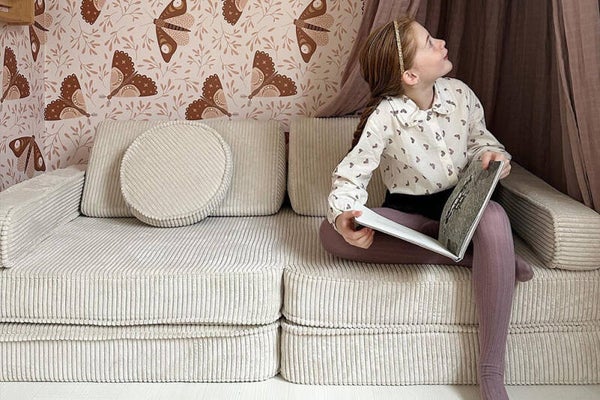 Hemelse zachtheid: onze bank is gemaakt van hemels zachte stof en zorgt voor een gezellige en comfortabele ervaring. Kinderen zullen er graag mee knuffelen.