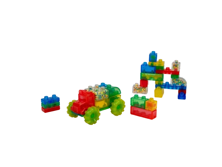 De vulllingen van de blokken zorgen dat kinderen hun zintuigen stimuleren en voor stimulatie van de sensorische tactilitieit.