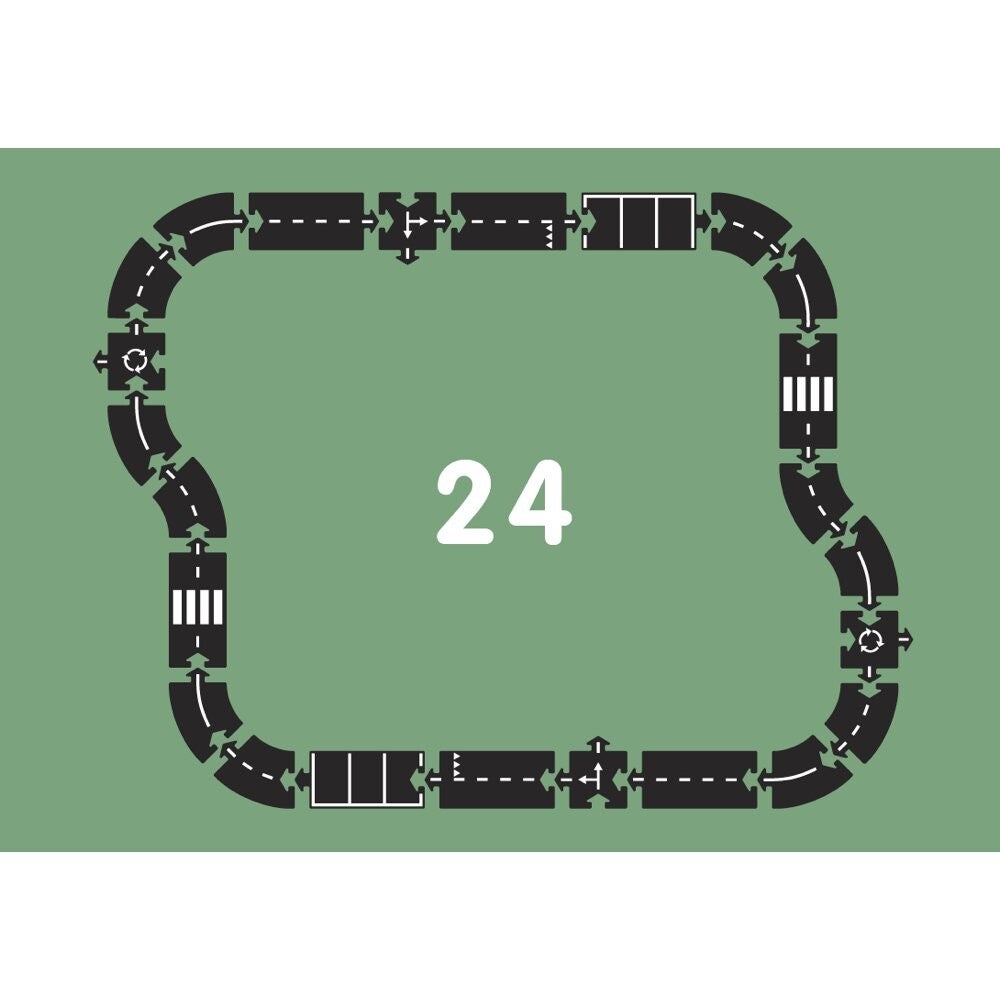 De snelweg-set van Waytoplay bestaat uit 24 rubberen baandelen waarmee je een parcours kan vormen van wel 376 cm lang. Je kan de rubberen puzzelstukken op tal van manieren kan combineren om zo een flexibele autobaan te vormen. De stukken zijn aan twee kanten bedrukt waardoor de mogelijkheden bijna eindeloos zijn.