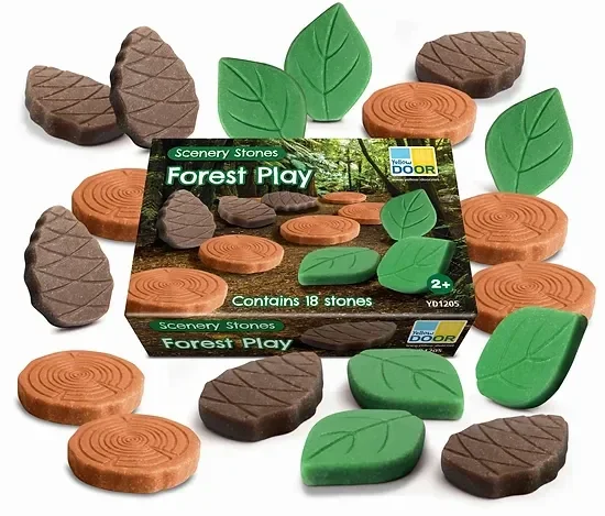 Dankzij deze tactiele landschapsstenen is er eindeloos veel open ended speelplezier te beleven! Deze prachtige bladeren, boomstammen en dennenappels zorgen ook voor tactiel spel in sensorische speelbakken met magical sand, speeldeeg en speelmixen.