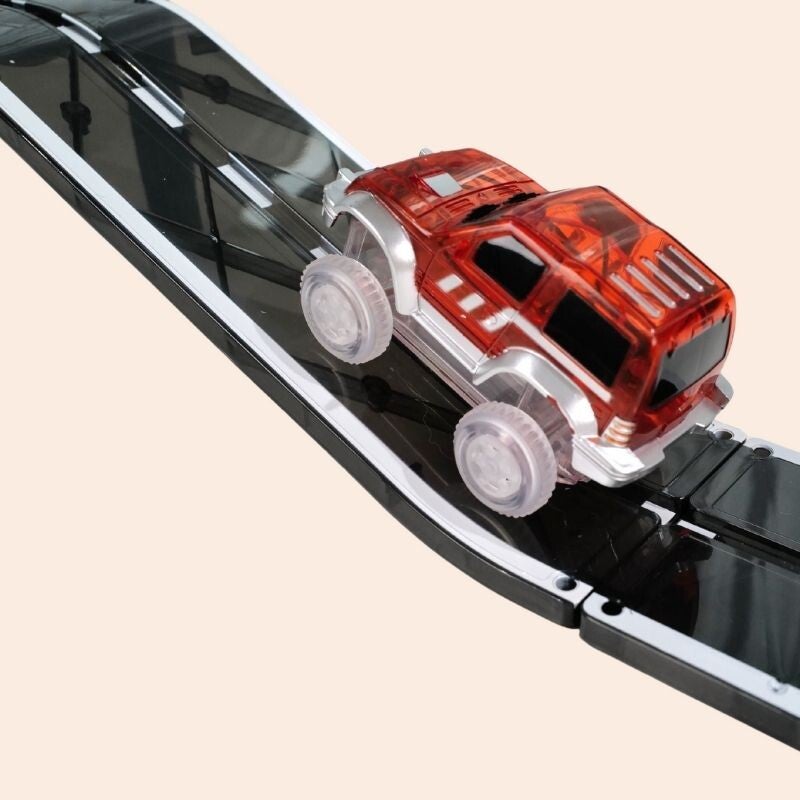 Bouw je eigen vette zwarte racebaan. Dat wil toch ieder kind! En dan ook nog iedere keer een andere variant. De zwarte magnetische onderdelen prikkelen de creativiteit en fantasie van kinderen wat zorgt voor geweldige racebanen. Deze racebaan bestaat uit 70 onderdelen, in de kleur zwart, tevens zitten er 2 auto's bij.