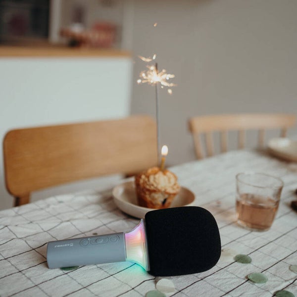 Maak je klaar om een show weg te geven in de woonkamer met deze te gekke Kidymic karaoke set. Deze alles-in-één micro brengt onvergetelijke momenten met zich mee tijdens een leuke karaoke avond. De microfoon heeft verschillende functies zoals stemverandering, geluidseffecten en de mogelijkheid om verbinding te maken met je telefoon.