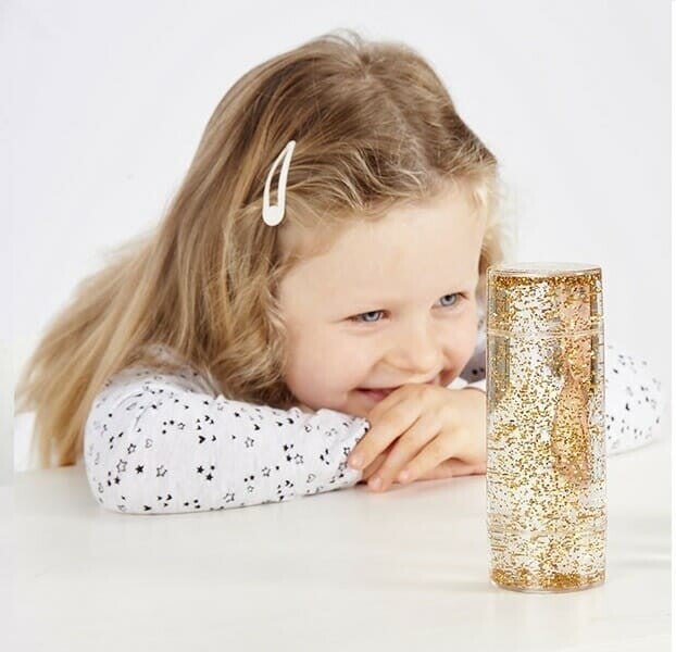 De oogverblindende glitters zweven door de glitter buis terwijl je de buis beweegt. Erg leuk voor de kinderen om te experimenteren: wat gebeurt er als je de buis rolt, ermee schudt?
