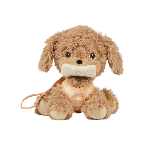 - Materiaal: 100% gerecycleerde pluche - 100% katoenen harnas met klittenband - Het bot is gemaakt van polyester met een metalen aluminium plaat binnenin - magneet in de mond van het hondje