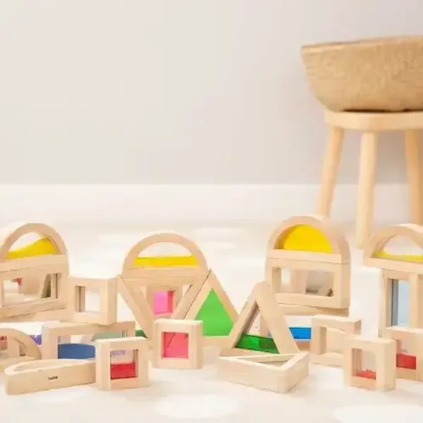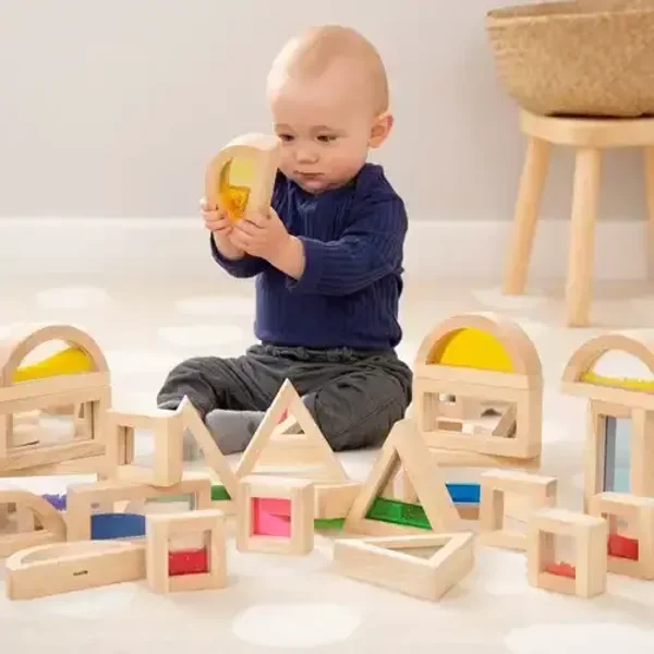 tick it Sensorische blokken zijn verschillend gevormde rubberhouten blokken die een verscheidenheid aan sensorische centra bevatten, zoals kralen, transparant acryl, gekleurd zand en glinsterend water. Kleurrijk en tastbaar, uw kind zal het geweldig vinden om de verschillende geluiden, bewegingen en kleuren te ontdekken terwijl het licht door de vormen gaat, waardoor zijn interesse en nieuwsgierigheid wordt geprikkeld. De veilige, gladde houten buitenkant en het felgekleurde sensorische centrum maken deze blokken perfect voor kinderen vanaf jonge leeftijd. Ideaal om vormen en kleuren te leren kennen en observatievaardigheden te bevorderen, bijvoorbeeld alle driehoekige blokken zijn groen, etc. De blokken hebben hetzelfde formaat als onze Grote Spiegelblokken (73376) die in combinatie met deze set kunnen worden gebruikt.