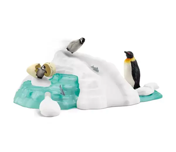 Pinguïn Familie Fun doet zijn naam eer aan! Het pinguïnkuiken is nog maar net uit het ei gekropen, maar verkent nu al de grot onder de ijsberg. Zijn oudere broertje gaat als een speer van de glijbaan af. Jippie!