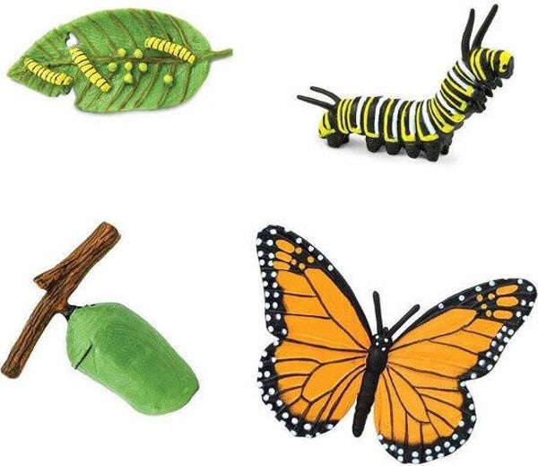 De levenscyclus van een Monarchvlinder van het merk Safari uit de serie Safariology. Met deze leuke figuurtjes van kunststof leer je heel simpel de levenscyclus. Fijn om te gebruiken bij een thematafel of in de speelhoek. Ze kunnen in het (kinetisch)zand, in de sneeuw, in de modder, in het water etc. worden gebruikt. Pak er een mooi boek bij en leer je kinderen hoe de levenscyclus verloopt. Ook heel prettig voor beelddenkers.