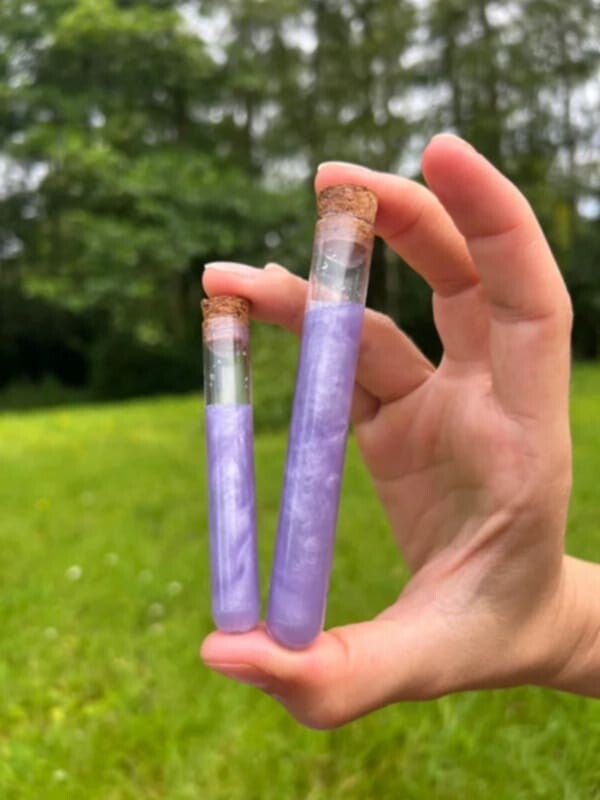 ✨ Magisch kleurveranderend poeder – Transformeert water in een mysterieuze paarse wereld.