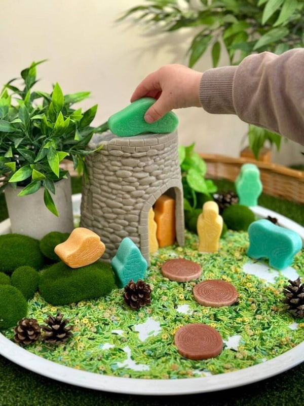 De veelzijdige Play Stone Tower is dé perfecte inspiratiebron voor eindeloze verhalen en avonturen. Of je nu een prinses, draak of boze reus in je fantasie plaatst, het is de ideale manier om kinderen te helpen hun verbeelding te ontwikkelen. Het stimuleert niet alleen creatief spel, maar ook de taalvaardigheden, door personages op, binnen, achter of naast de toren te plaatsen.