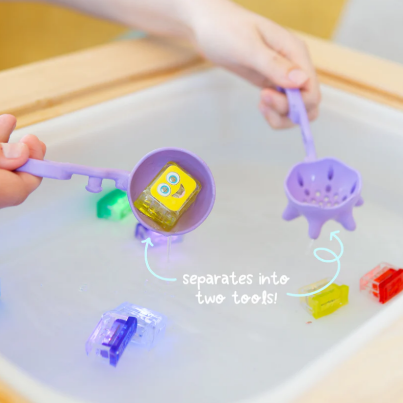 Maak kennis met de Pick Up Pals: de perfecte sensorische hulpmiddelen voor scheppen, gieten en zeven! Deze schattige zeefiguurtjes zijn gemaakt van siliconen. Ze kunnen uitstekend worden gecombineerd met sensorische tafels en tools zoals de Glo Pals & Jars.