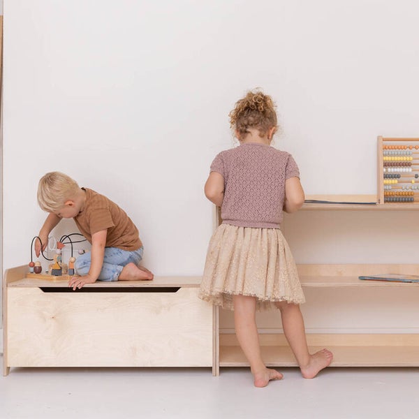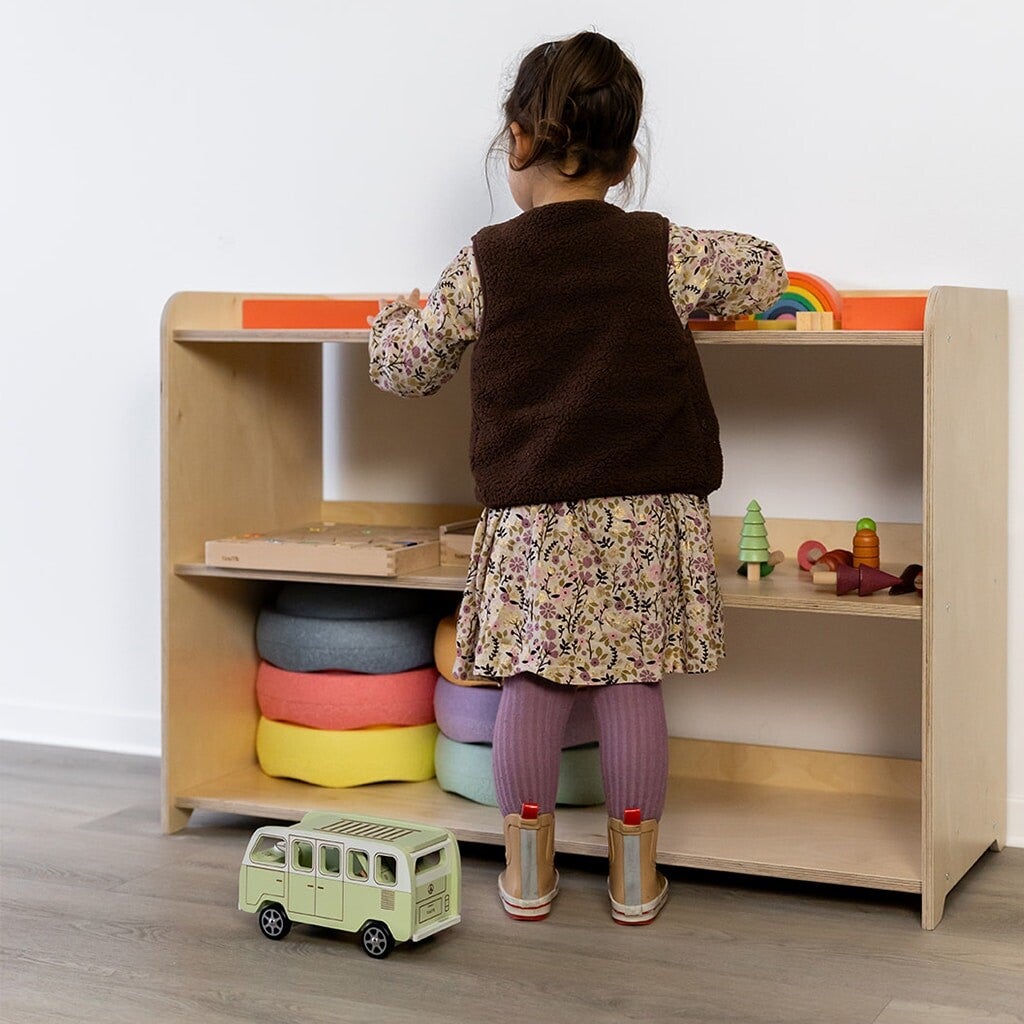 Wat een pareltje! In deze montessori speelgoedkast van Jindl met drie schappen kun je je favoriete speelgoed de perfecte plaats geven. De speelgoedkast is open zodat kinderen altijd de mogelijkheid hebben om bij hun speelgoed of andere materialen te kunnen. Zo stimuleer je ze om te spelen. Daarnaast is het ook heel leuk om mooi speelgoed op deze manier uit te stallen, zodat het bewonderd kan worden. De speelgoedkast is ook super leuk om te combineren met een speelgoedkist of een lage speelgoedkast van Jindl.