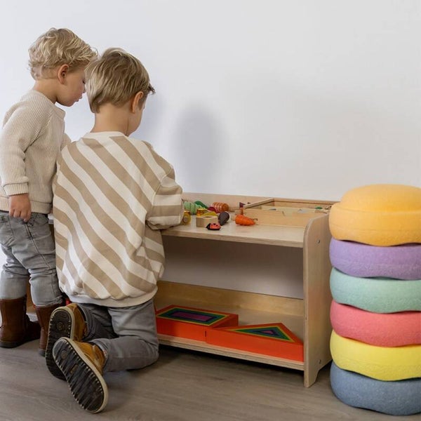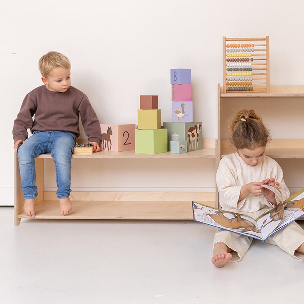 Jindl | Houten montessori speelgoedkast - naturel, laag