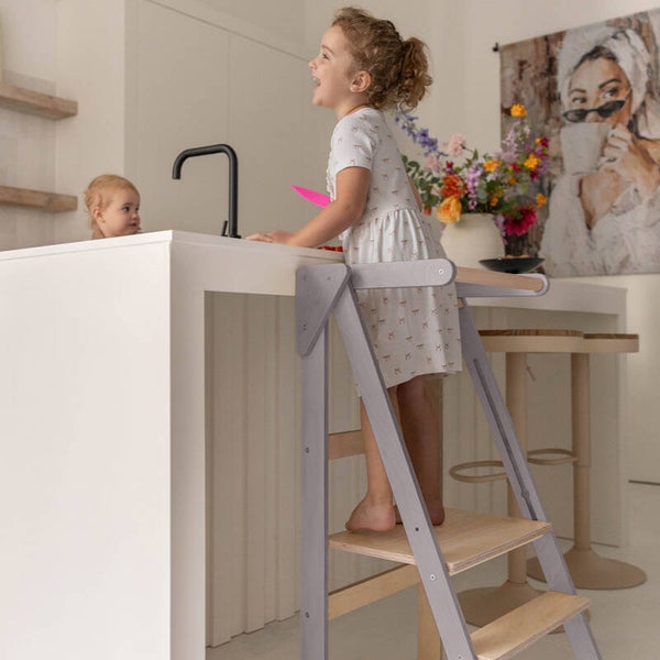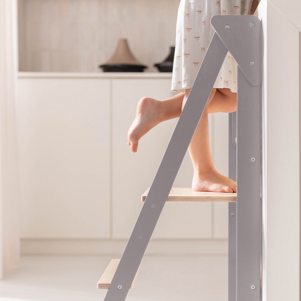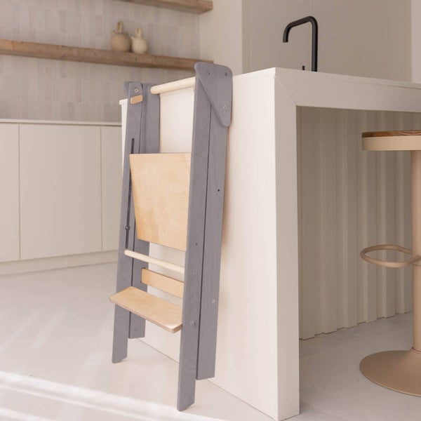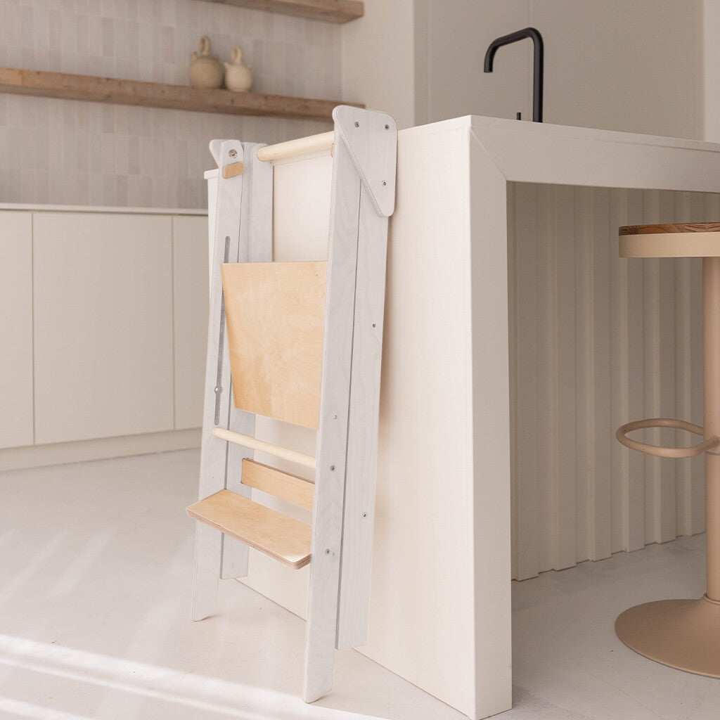 Jindl | Houten montessori leertoren inklapbaar - Zwart / Wit/ Grijs/ Naturel