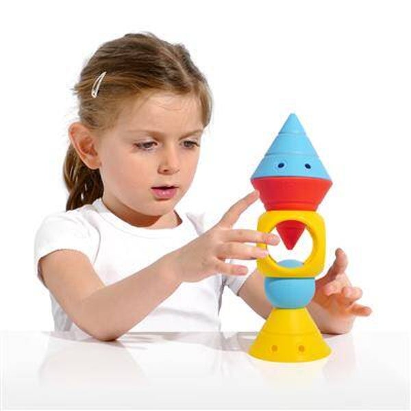 Moluk heeft een uitdagende en toch simpele combinatie van drie vormen samengesteld. Vanaf de jongste ontwikkelingsleeftijd is het interessant, omdat het makkelijk vast te houden is, de kleuren aanspreken en de vormen uitdagen.