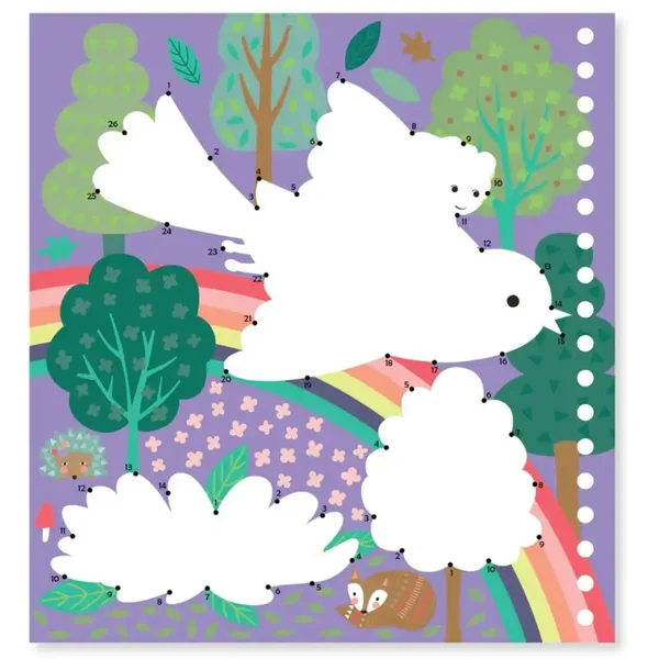 16 activiteiten in 1 boek (2x punt-naar-punt, 2x doolhof, 8x kleurplaten, 1x zoek het paar, 1x zoek de verschillen, 2x scènes + stickers)