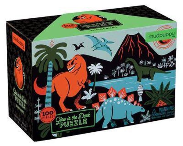 Reis terug naar de prehistorie met Mudpuppy's Dinosaurussen Glow-In-the-Dark Puzzel. Nadat je 100 stukjes dinosaurusplezier in elkaar hebt gezet, doe je het licht uit om de puzzel te zien gloeien! - 100 stukjes, 18 x 12" - Leeftijd 5+ - Afmetingen doos: 7 1/2 x 5 x 3 1/2"