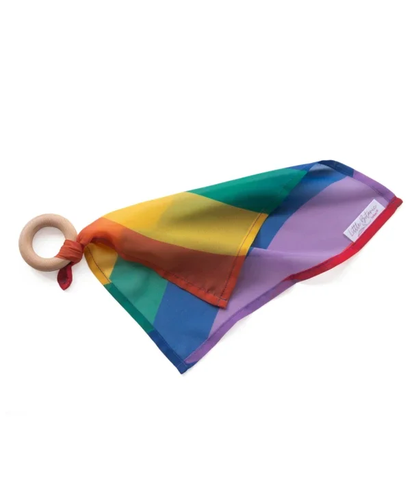 Little Botanic Label | Playcycle Speeldoek Waves Regenboog aan Houten Ring (30 cm) - Pastel & Regenboog