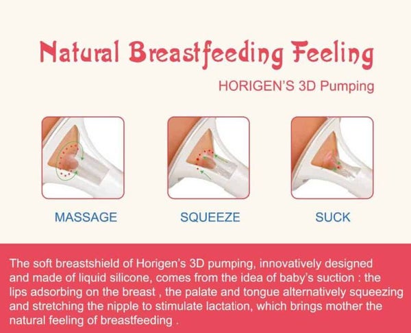 Met de Horigen handkolf met 3D borstschild kies je jouw eigen vacuuminstelling en kolfritme. Het 3D kolfschild en tunnel zijn gemaakt van zacht silicone die de tepel en tepelhof goed omsluiten. Je kolft dus zowel met vacuum en massage zoals een baby uit de borst drinkt.