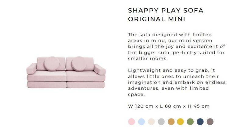 Met onze set van 10 losse onderdelen zijn de mogelijkheden voor plezier en creativiteit eindeloos! Verander de Shappy Play Sofa in alles wat je maar kunt bedenken, van een spannende ijssalon tot een snelle raceauto, en zie hoe de verbeelding van je kind in een mum van tijd tot leven komt.