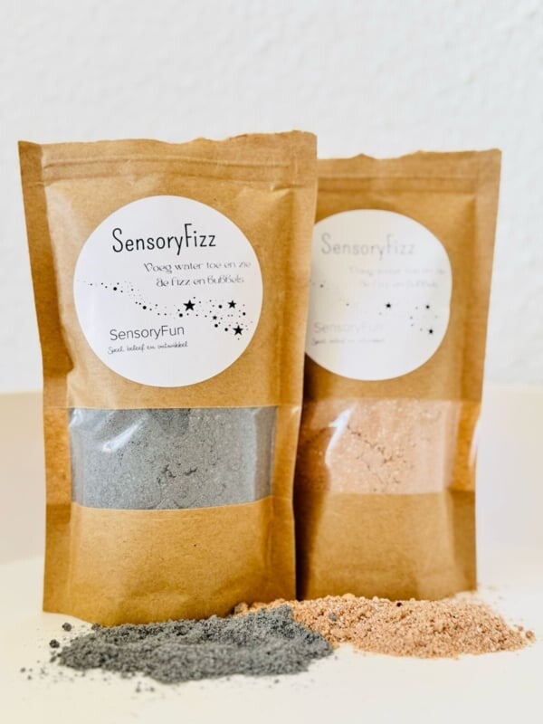 SensoryFizz is een kant en klaar magisch poeder wat gaat bubbelen en bruisen als je er water aan toe voegt. Perfect om te experimenteren in magische werelden en drankjes en een super leuke toevoeging aan je modderkeuken.