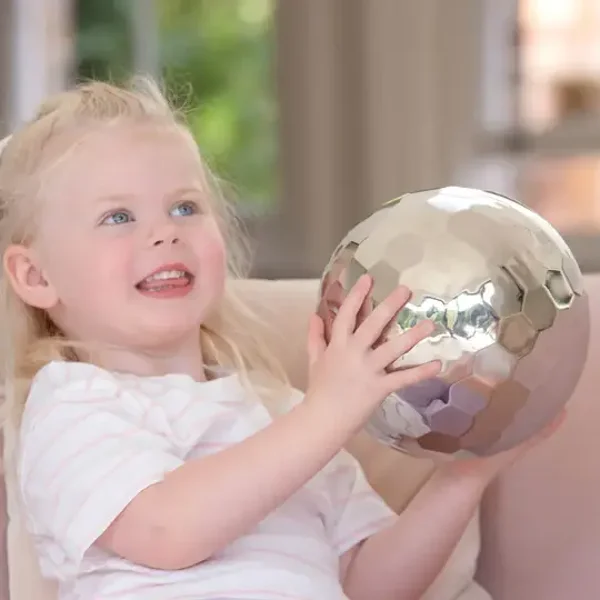 Ontdek de magie van vervormde reflecties met de tickit® Sensory Steel Tumble Ball! Deze glanzende spiegelbol creëert hilarisch uitgerekte reflecties die nieuwsgierige geesten boeien. Kijk hoe uw kind giechelt om zijn of haar vervormde gezicht terwijl het onderzoekt hoe licht over de gebogen oppervlakken danst vanuit elke hoek.