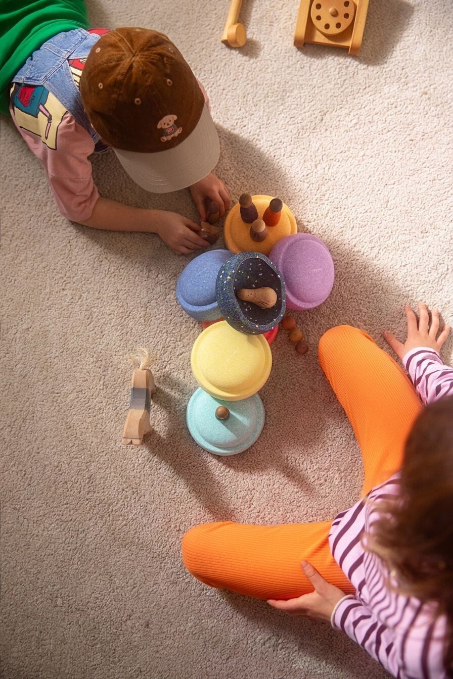 Stapelstein Mini Rainbow pastel, Stapelstein Inside pastel, Stapelstein Original Mini pastel, Stapelstein Water Lily pastel, Stapelstein speelgoed, sensorisch speelgoed kinderen, sensorisch spel kinderen, open ended speelgoed, Montessori speelgoed, stapel speelgoed kinderen, balans speelgoed kinderen, motorisch speelgoed, Stapelstein BarWelp.