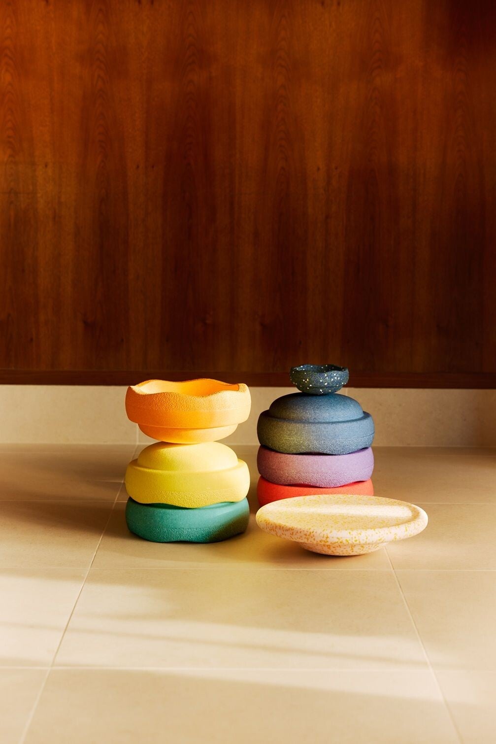 Stapelstein Rainbow set Water Lily pastel, Stapelstein pastel set, Stapelstein special rainbow pastel, Stapelstein limited edition, Stapelstein speelgoed, Stapelstein balans speelgoed kinderen, Stapelstein stapelstenen, Stapelstein balance board, sensorisch speelgoed kinderen, sensorisch spel kinderen, open ended speelgoed, Montessori speelgoed, motorisch speelgoed kinderen, bewegend leren, Stapelstein BarWelp.