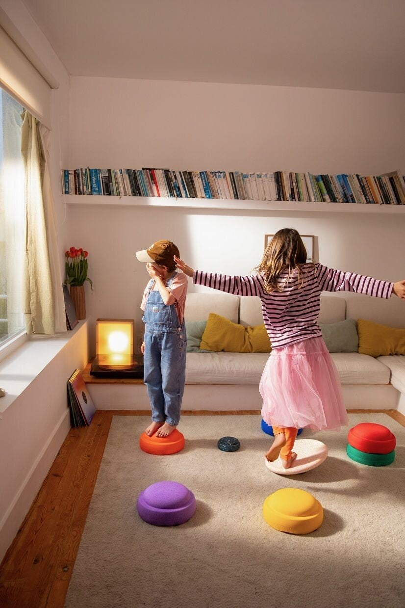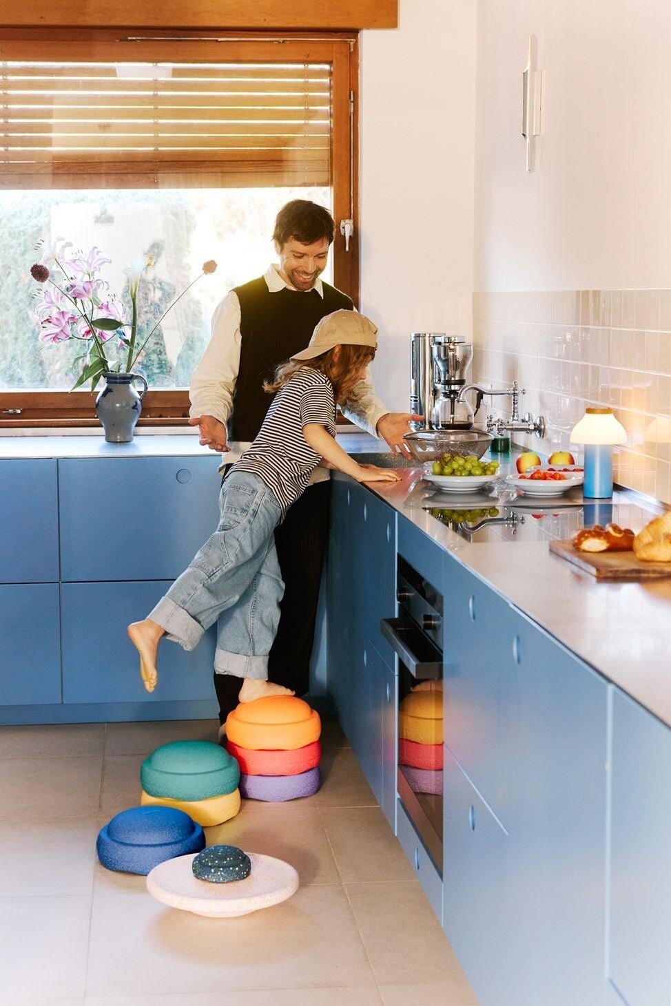 Met de Stapelstein Special Rainbow Set Water Lily Pastel kunnen kinderen eenvoudig balanspaden maken, bewegingsspelletjes bedenken of creatieve bouwwerken bouwen. De stenen kunnen ook gebruikt worden als flexibele kruk of dynamische zitplek, waardoor kinderen spelenderwijs hun balans, motorische vaardigheden en lichaamsbewustzijn ontwikkelen.