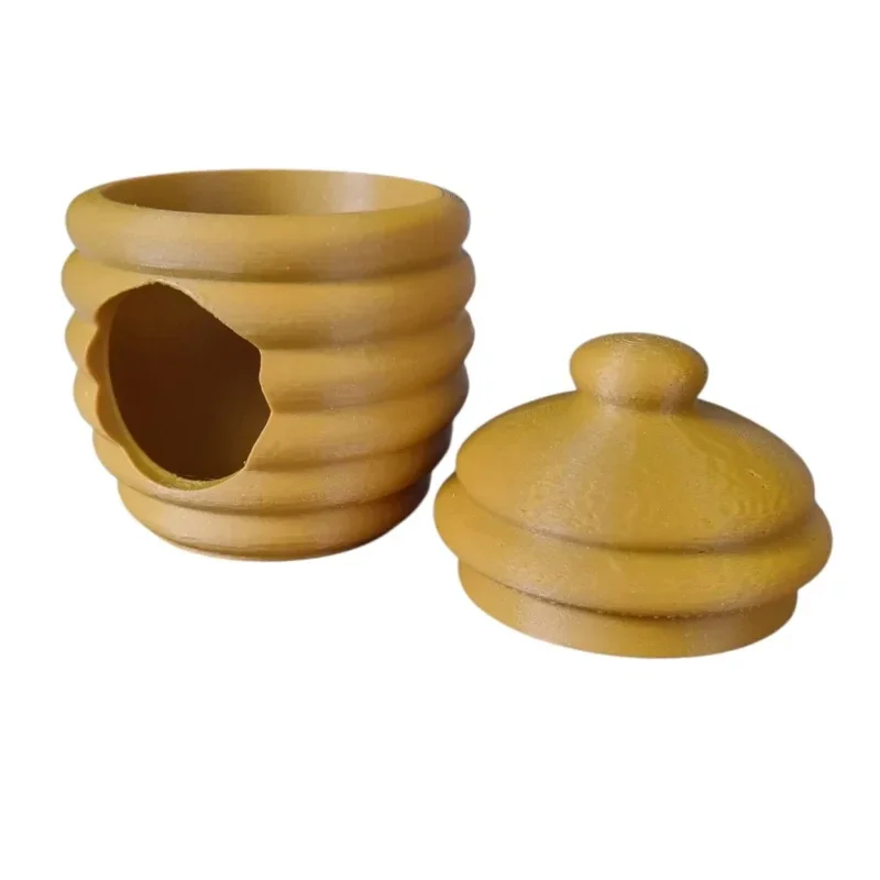Combineer de bijenkorf met natuurlijke materialen zoals speelrijst, kikkererwten, steentjes of zand. Voeg diertjes of poppetjes toe en laat kinderen hun eigen verhaal creëren. De opening aan de zijkant maakt hem ideaal voor sensorisch spel en fijne motoriek.