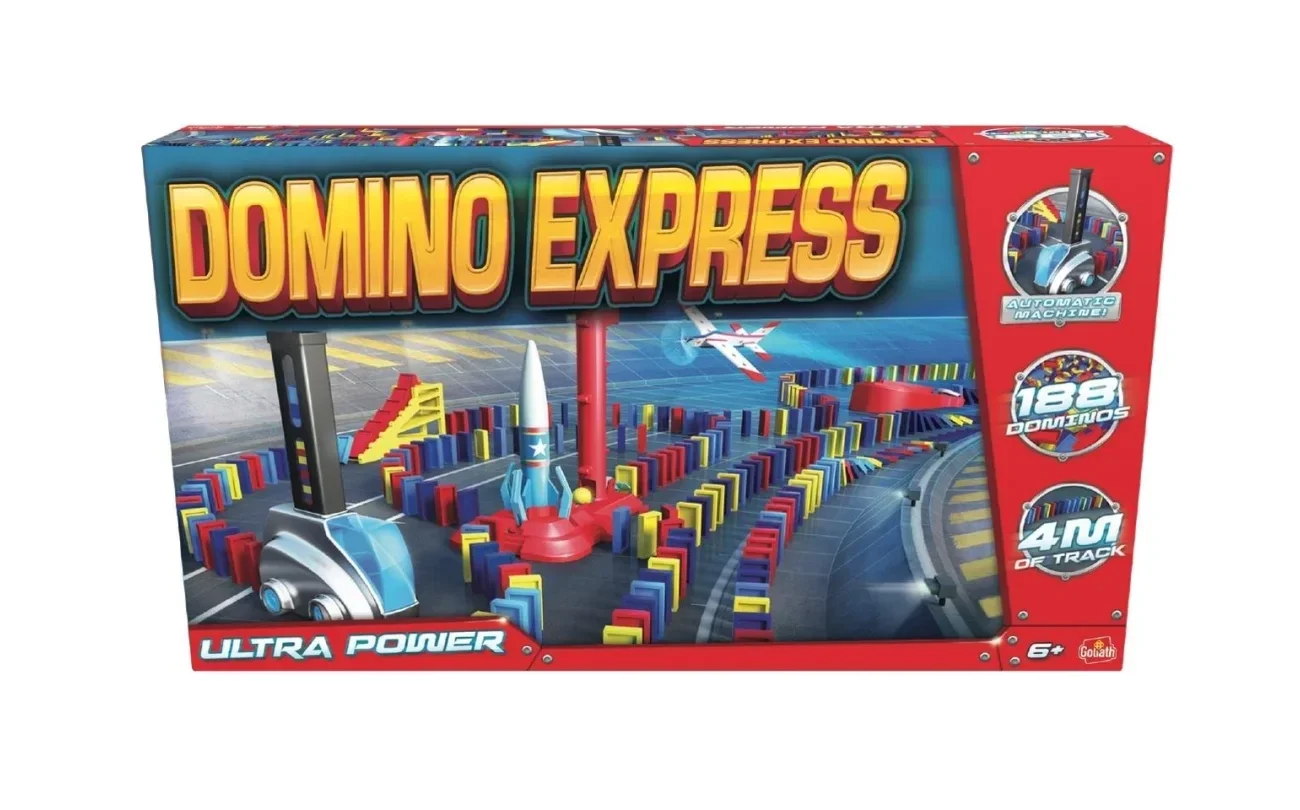 Met Domino Express kun je snel en gemakkelijk aan de slag met het bouwen van de gaafste dominotracks. Combineer de set onderdelen met alledaagse huishoudelijke voorwerpen zoals stoelen en tafels voor extra speelplezier. Plaatst de kleurrijke dominostenen voorzichtig achter elkaar op dezelfe stand, en omgooien maar!